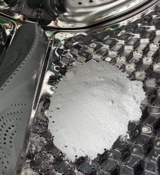 ✅ 과탄산소다를 세탁조에 부어줍니다. ✅ 종이컵 1컵 분량으로 부어주면 됩니다. ✅ 과탄산소다를 넣는 이유는 어떠한 얼룩이나 찌꺼기가 있어도 40도 이상에서 살균 효과가 있기 때문에 꼭 과탄산소다를 넣어 주세요.