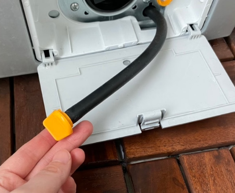 ✅ 뚜껑을 열면 작은 호스가 나오는데 여기에 물이 흘러나올 수 있으니 꼭 물을 비우고 청소를 해줍니다.