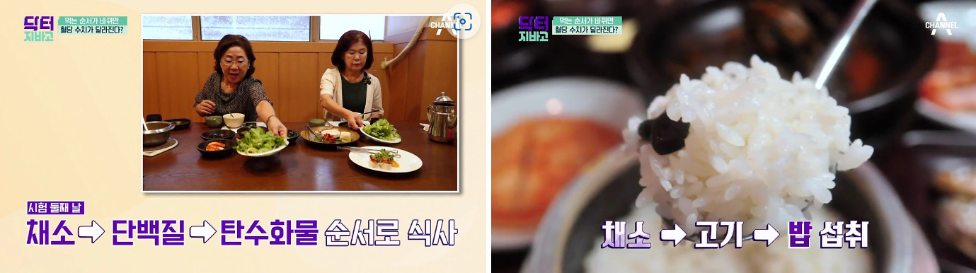 당뇨로 힘들게 식사하시는 분들이 많습니다. 계속 고혈당이 유지되는 분들보다 먹을때마다 혈당이 오르는 경우가 더 위험하다고 하는데요. 이런 경우는 식사시 똑같이 먹고 순서만 바꿔줘도 혈당이 오르는 것을 막아준다고 합니다.