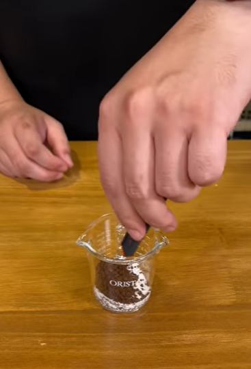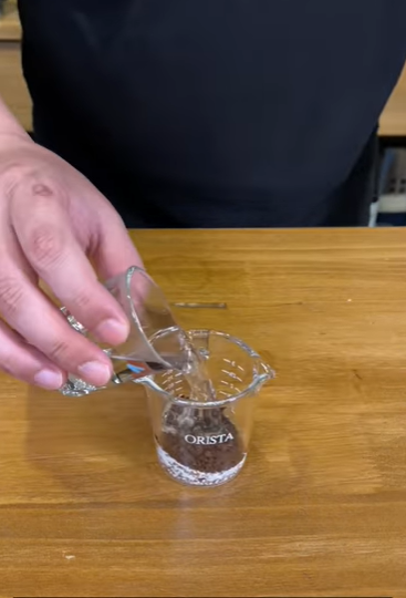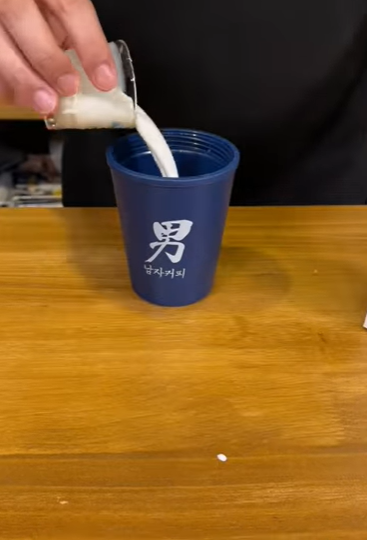 ✅ 뜨거운물 소주잔으로 1잔 분량을 넣고 잘 섞어줍니다.
