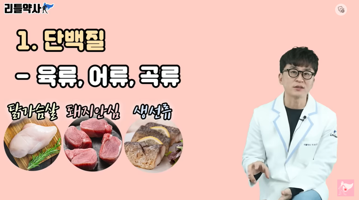 ✅ 첫 번째, 육류,어류,곡류의 3가지 단백질류를 골고루 섭취하셔야 합니다. ✅ 닭가슴살을 기본으로 해서 지방이 적은 돼지안심, 고등어와 삼치 같은 생선도 일주일에 한 번 섭취해 주시는 것이 도움이 됩니다. ✅ 여기에 식물성 단백질인 콩과 두부도 잊지말고 섭취해 주시길 바라겠습니다.