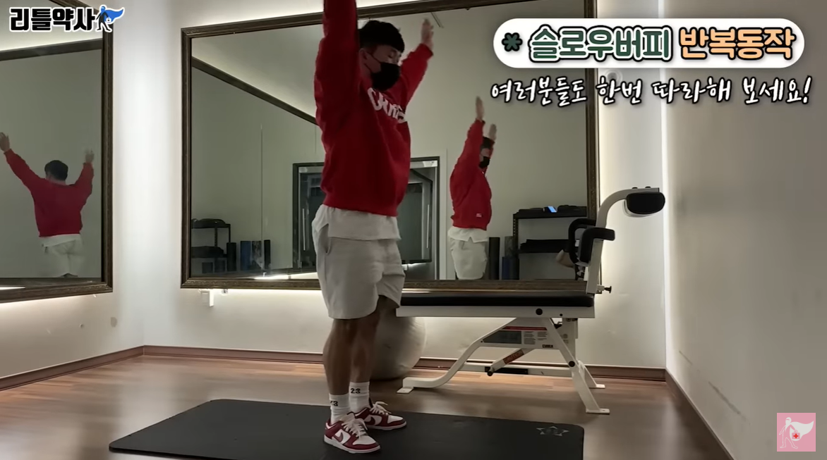 앞써 말씀드렸듯이 오늘 배워 볼 ‘슬로우 버피’라는 운동은 동작을 집안, 실내에서 하실 수 있도록 좀 천천히 하는 동작으로 초보자들도 하시기 좋은 운동법이라고 합니다.